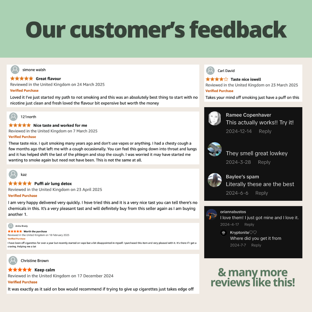 The ODEIUN™ Herbal Essential Diffuser is a 100% natural, nicotine-free inhaler designed to support lung health and help you breathe more freely. It delivers gentle vapor from concentrated plant extracts—mullein, thyme, and mint—blended with purified water and vegetable glycerin. Simply inhale through the mouthpiece for a smooth, refreshing herbal experience that helps you feel clear, calm, and grounded.