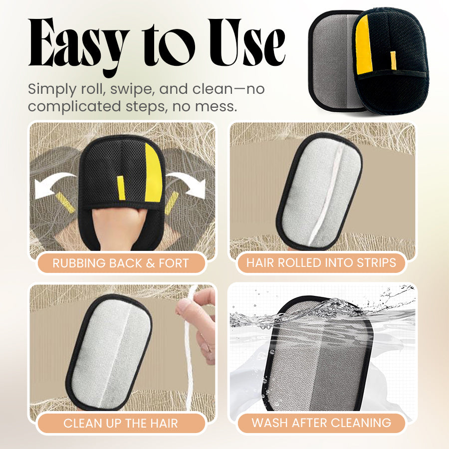 Our unique, patent-pending electrostatic design works like a powerful magnet, instantly lifting and trapping even the most stubborn pet hair from any surface. All you need is a simple, gentle swipe of your hand. No more loud vacuums, no more wasted money on sticky refills, and no more endless scrubbing.