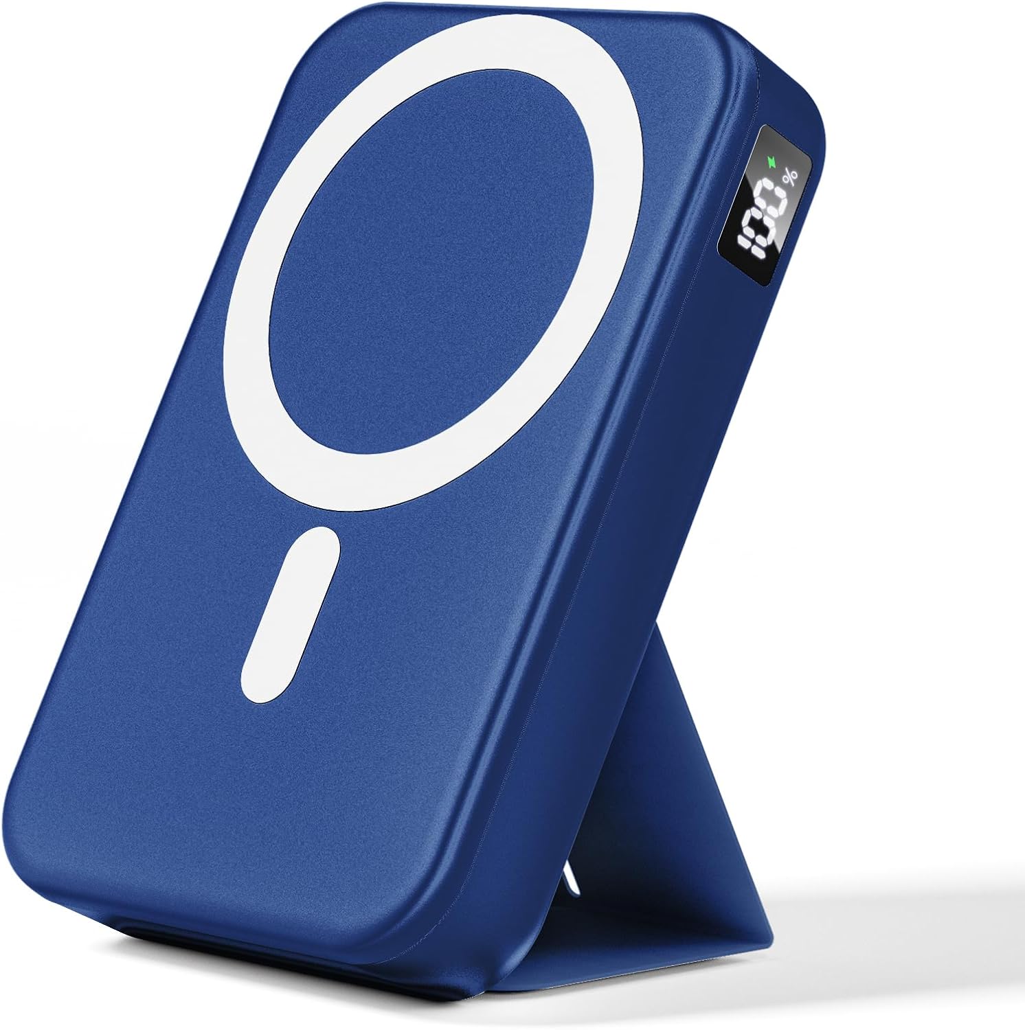 Magnetic Power Bank, 10000mAh Wireless Portable Charge, Foldable Stand & LED Display Battery Pack