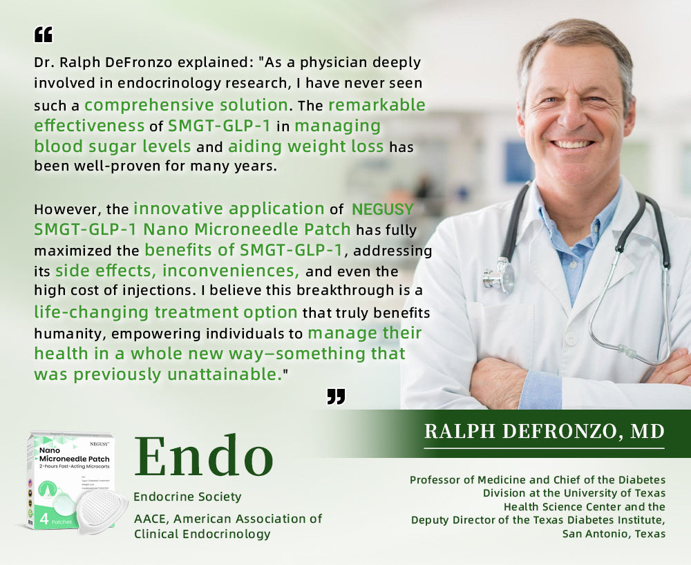 "I suffer from both obesity and diabetes, and I’ve been getting SMGT-GLP-1 treatment at the hospital. You might be wondering why I suddenly switched to using the Negusy™ Microneedle Patch. SMGT-GLP-1, also known as semaglutide, is definitely a great treatment. It works really fast—just a short time after injection, my appetite dropped, I lost weight quickly, and my blood sugar went down. But, as we all know, it’s tough to break old habits. On my scheduled injection days, I’d come up with all sorts of excuses to skip, which led to failed treatments. The cost, hunger, time conflicts, or even something as simple as it raining outside would keep me from going. But the Microneedle Patch is perfect for someone like me who struggles with inertia. I can use it easily at home, and the effects last, keeping my appetite in check. What’s even better is that it’s really affordable, and anyone can use SMGT-GLP-1 to help lose weight and keep their blood sugar in check!"
